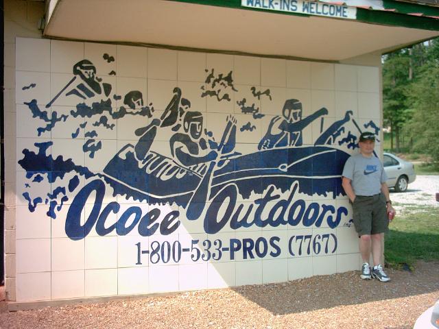 De Ocoee is een van de meest populaire raftingrivieren in Amerika. Wij deden de 5 mijl die op deze tekening staan. Bijna continu is er ‘white water’. Meer dan 20 stroomversnellingen en watervallen van klasse 3 en 4. We startten met klasse 4 – Grumpy – die ons bijna verkeerd afging en eindigden met klasse 4 Hell’s Hole. De klasse 3 waarbij we de helft passagiers verloren was Hollywood Hole – de gids maakte van deze normale klasse 3 met opzet een klasse 4 door speciale technieken toe te passen.