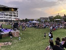 Tegen 6 uur ‘s avonds gingen we stadionstoelen klaarzetten in het park.