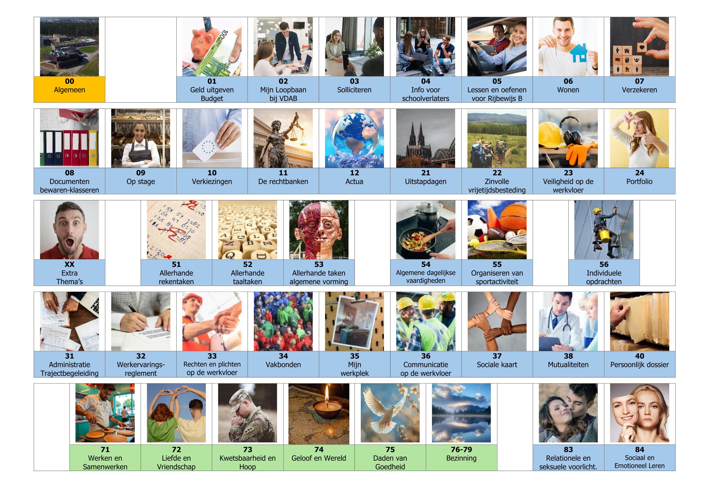 - Een afbeelding met daarop de iconen van de thema’s van de website.
